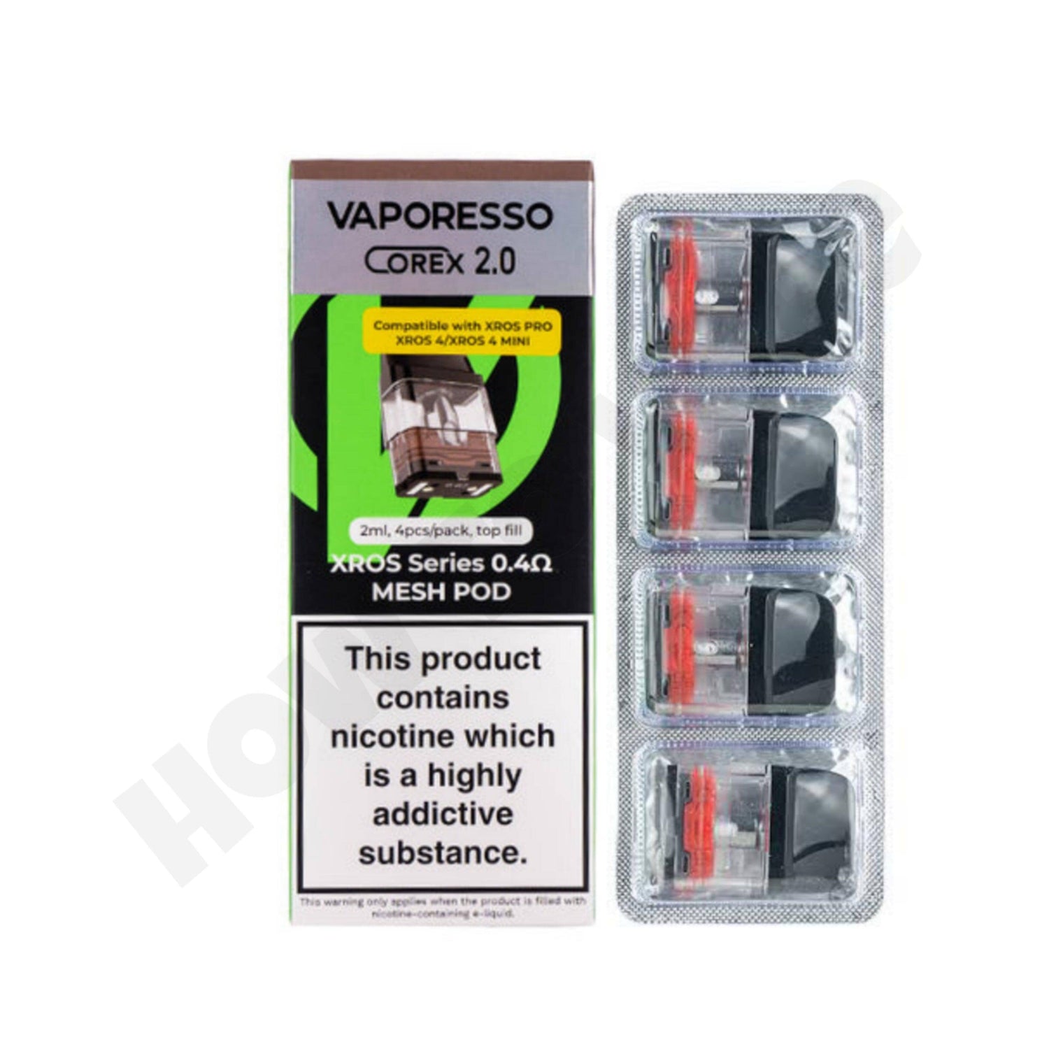 - Vaporesso XROS 0.4 Ohm Corex 2.0 pods are Compatible with Only Vaporesso Xros Pro Pod kit, Vaporesso Xros 4 Pod kit, Vaporesso Xros 4 Mini Pod kit and Vaporesso Xros 4 Nano Pod kit